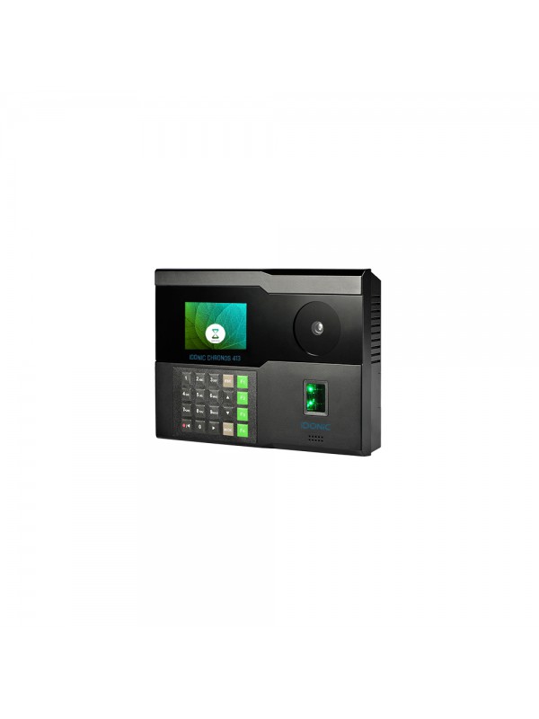 IDONIC Chronos 413 é um relógio de ponto por palma da mão, bem como impressão digital e cartão de proximidade e código-pin em opcional. Procede ao reconhecimento biométrico do usuário sem a necessidade de contacto físico com o equipamento, em caso de uso da palma da mão e do cartão de proximidade. Esta característica torna-o no equipamento ideal para crises pandémicas, sendo que as restantes tecnologias de registo poderão ser utilizadas em situações normais.