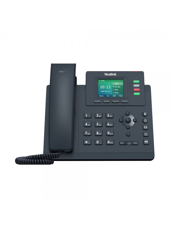 Como um telefone IP básico com tela a cores e alto desempenho, o Yealink T33G (s/ PSU) oferece suporte para quatro linhas e inclui conferências locais de cinco vias.