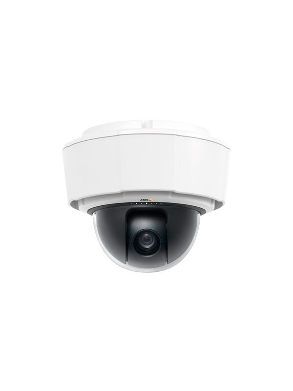 A câmara AXIS P5515-E é um equipamento compacto de videovigilância com recursos de pan/tilt/zoom (PTZ) que permite aos usuários uma vigilância por vídeo panorâmica de 360⁰ e um zoom de 12X com foco automático para vistas detalhadas.