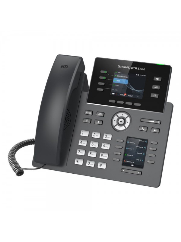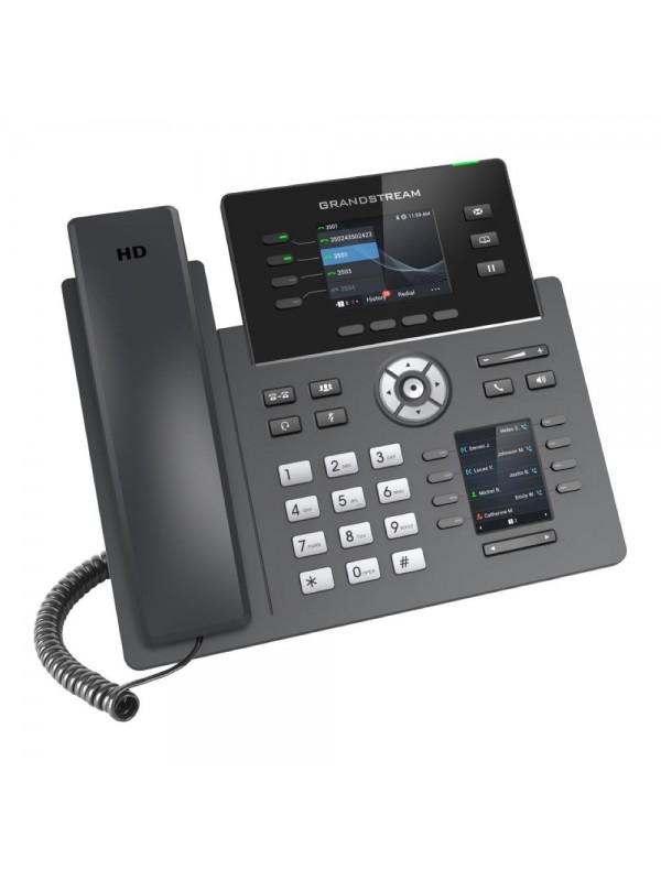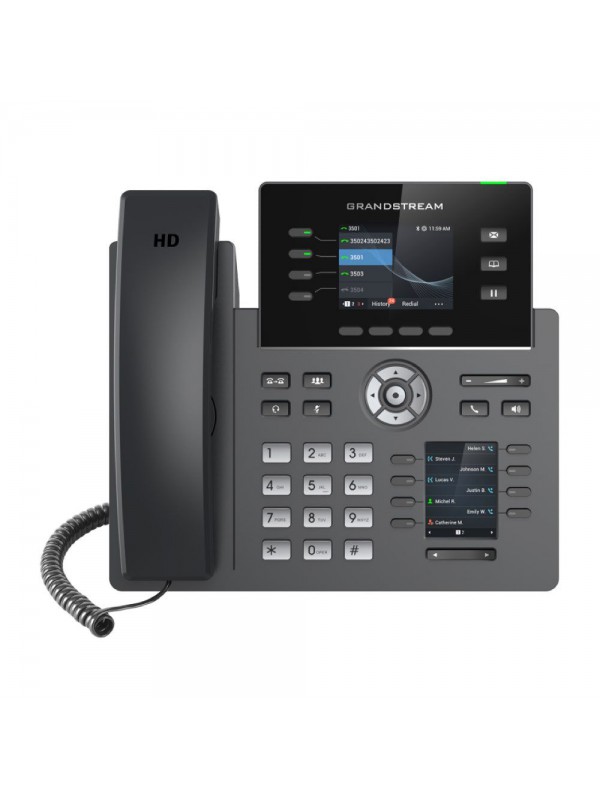 Grandstream GRP 2614 apresenta um design elegante e um pacote de recursos de última geração, como duas telas LCD com teclas virtuais multifuncionais (VPKs), WiFi integrado, suporte a Bluetooth, duas portas Gigabit e muito mais.