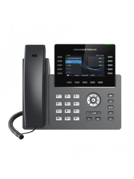 O Grandstream GRP 2615 suporta 10 linhas e 16 contas SIP, apresenta um design elegante e um pacote de recursos de última geração, incluindo Wi-Fi integrado, suporte a Bluetooth, 40 teclas multifuncionais (MPKs), um módulo de expansão disponível, duas portas Gigabit e muito mais.