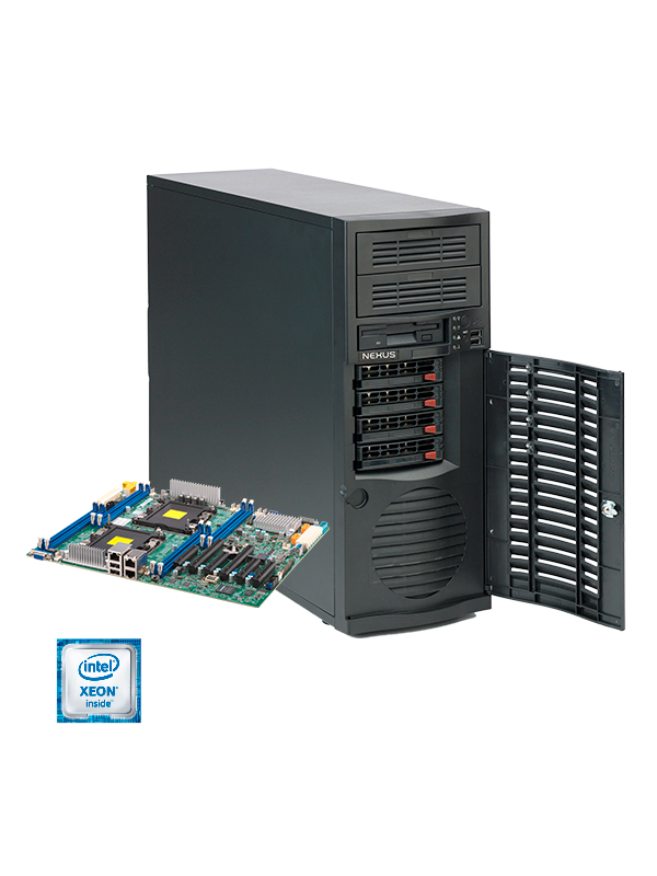 Nova geração de servidores de armazenamento, com suporte para dois processadores Intel Xeon Skylake, em formato tower com 4 gavetas hotswap.